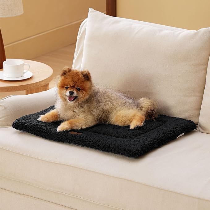 Bedsure Washable Dog Crate Bed for Small Dogs, Reversible Foam Floor Dog Mat, Lightweight Travel Flat Pet Beds for Indoor & Outdoor Dogs (24" x 18", Black)