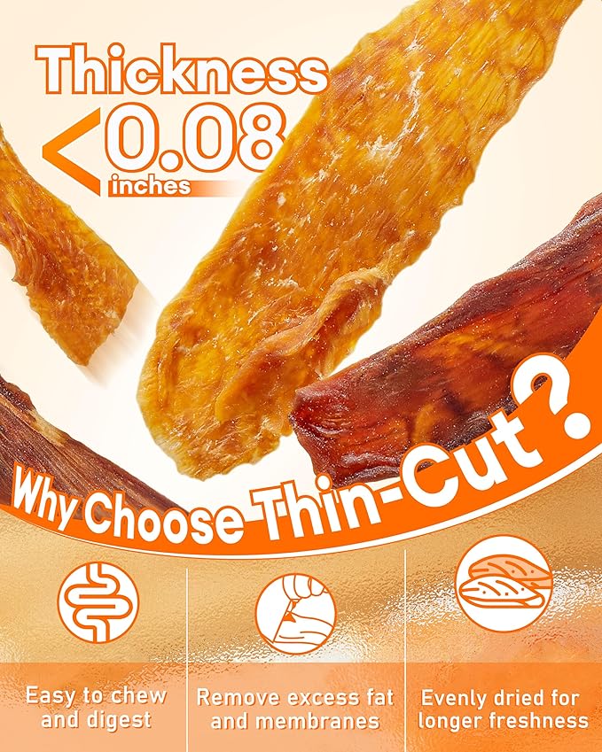 - 【Perfect for Dogs of All Ages and Sizes】 Designed to be thin, easy to chew, and digestible, these treats are suitable for dogs at every life stage—from teething puppies to active adults and senior dogs. Whether as a training reward or a tasty snack, they offer a safe and enjoyable snacking experience.