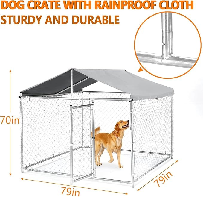 - SPACIOUS DESIGN: This large outdoor dog kennel measures 79‘ x 79’ x 70’ and provides plenty of room for your pet to move around freely and comfortably.