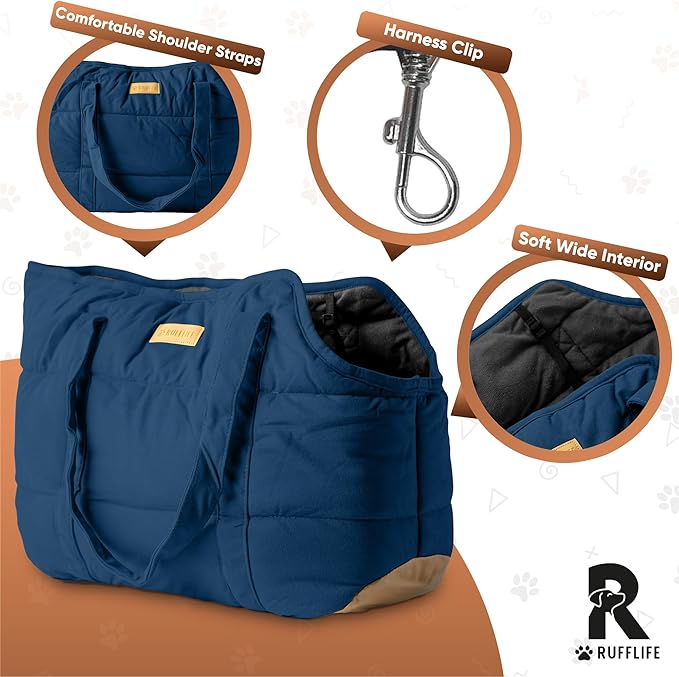 Cozy Plush Pet Carrier Purse - Secure Harness Clip, Lightweight Tote Design for Small Dogs and Puppies (Dark Blue)