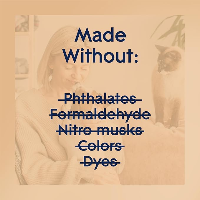 - Made without: phthalates, formaldehyde, nitro musks, artificial colors or dyes