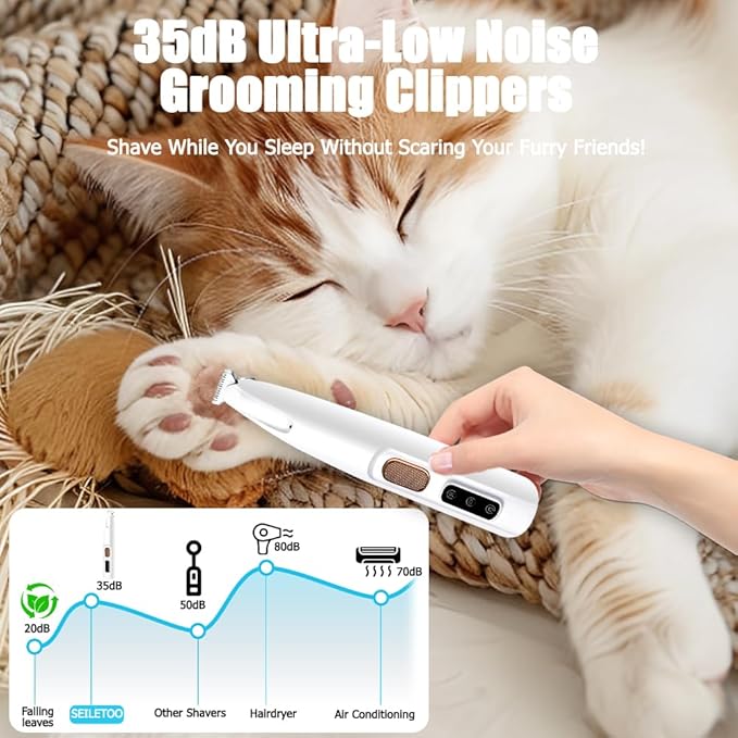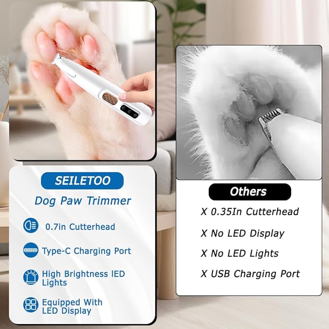 - 😸【LED Light for Enhanced Visibility】The pet micro precision trimmer features a built-in LED light that illuminates the grooming area, providing better visibility and precision while trimming. Dog grooming clippers for paws ensures you never miss a spot and achieve professional grooming results.