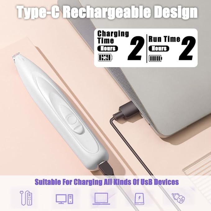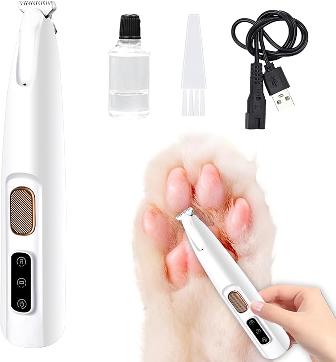 - 😸【Rechargeable and Cordless】Enjoy the convenience of cordless grooming with dog trimmer's built-in rechargeable battery. Say goodbye to tangled cords—Simply charge dog trimmer for grooming using the included charging cable, and it's ready for use whenever you need pet paw trimmer with led light.