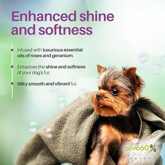 Natural Dog Shampoo Bar with Roses and Geranium | Eco-Friendly, Long-Lasting Dog Bath | Sulfate-Free, Nourishing Oils for Shiny Coat | Dog Essentials | Oliva 60
