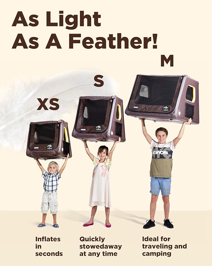Collapsible Portable Soft Dog Crate-HIGHPI Inflatable Dog Travel Crate for Extra Small Dogs, Waterproof Dog Kennel Outdoor Indoor, Safety Foldable Dog Cage for Car Home, Dog Carrier 20"L x 26"W x 22"H