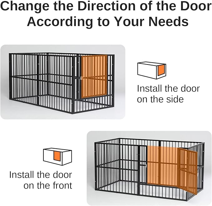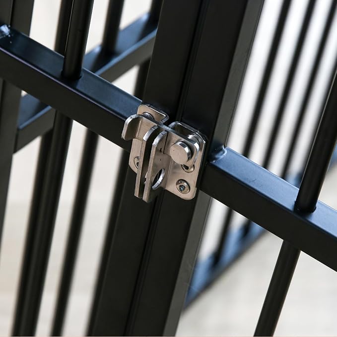 - [Convenient for Pets to Enter and Exit]: The step door of the pet playpen allows for comfortable walking through, Fence doors won't hurt your pet. Upgraded locks are designed to prevent puppies from opening and escaping on their own. For double security even if you have a naughty pet. The panel with the door can be installed upside down so that it also takes care of the small size of the dog-safe access.