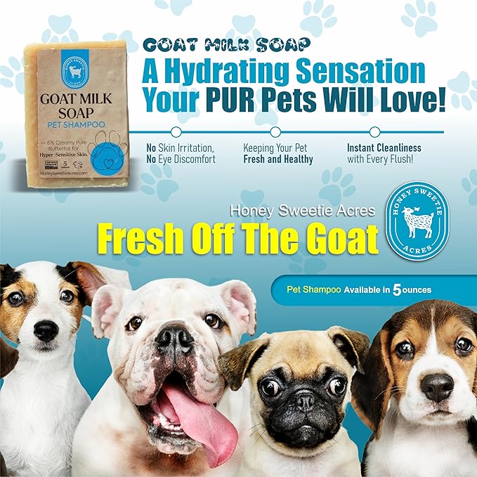 - Moisturizing Goat Milk Formula: Enriched with fresh, off-the-goat milk, this 5-ounce shampoo bar provides deep moisturizing benefits to relieve dry, itchy skin, leaving your pet's coat soft and healthy.