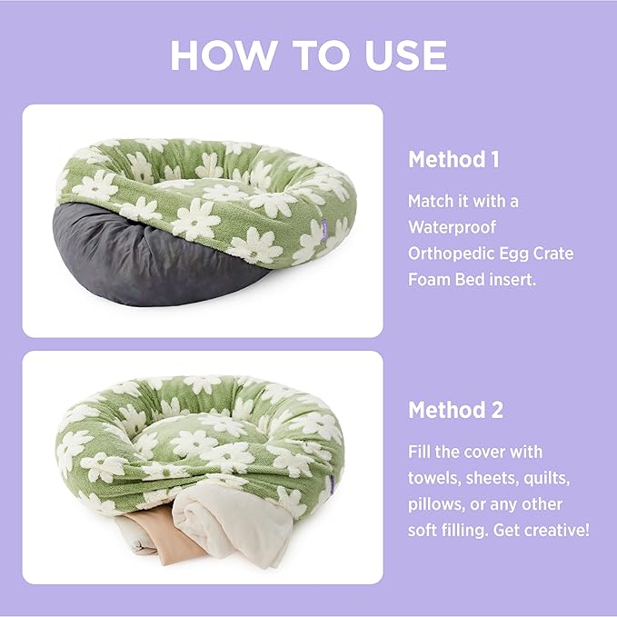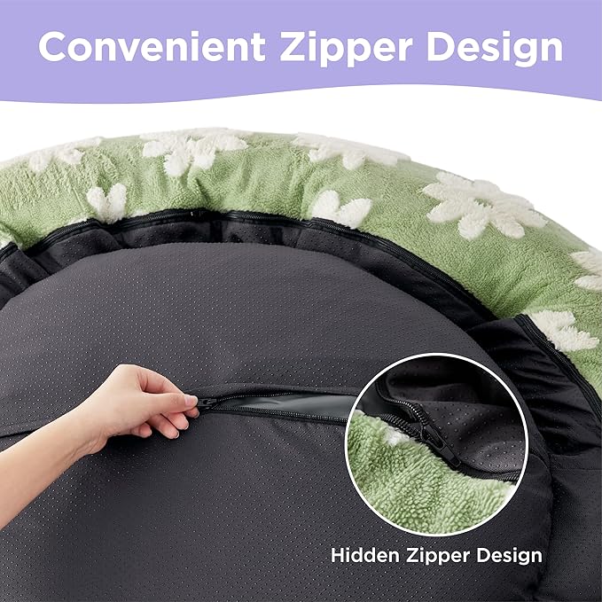 - Hassle-Free Hygiene: Our removable worry-free pet bed cover makes cleaning simple. For sizes S to M, just put it in a gentle cold wash cycle and tumble dry on low. Give it a quick pat to fluff it up, and voila! Your pet bed is fresh and ready for use. Perfect as a round cat bed or for small dogs