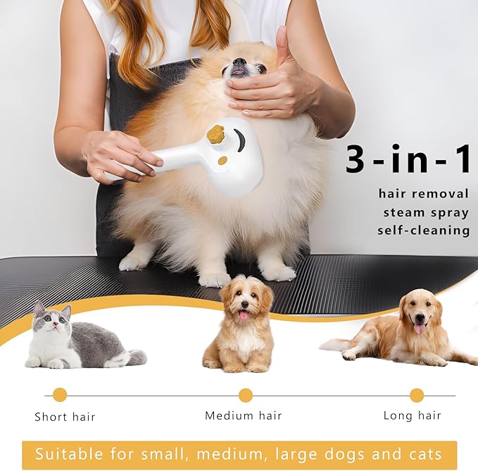 Pet Steam Brush for Dog & Cat – 3-in-1 Spray Hair Removal Comb – Steam for Shedding & Grooming – Water Brush for Long & Short Haired Pets – Spritz Defur Comb –