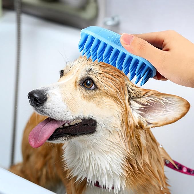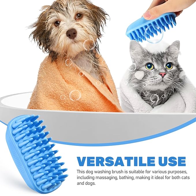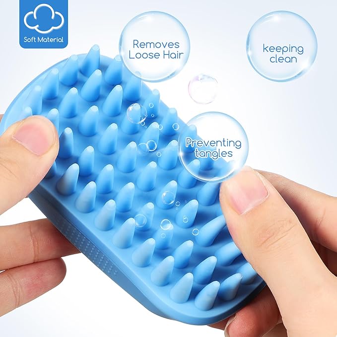 - Gentle and Effective: The soft rubber head quickly wipes away dirt, dead skin, and loose hair, making it a great pet shampoo brush for grooming and bathing.