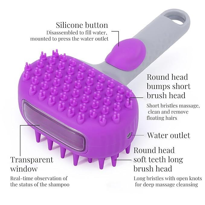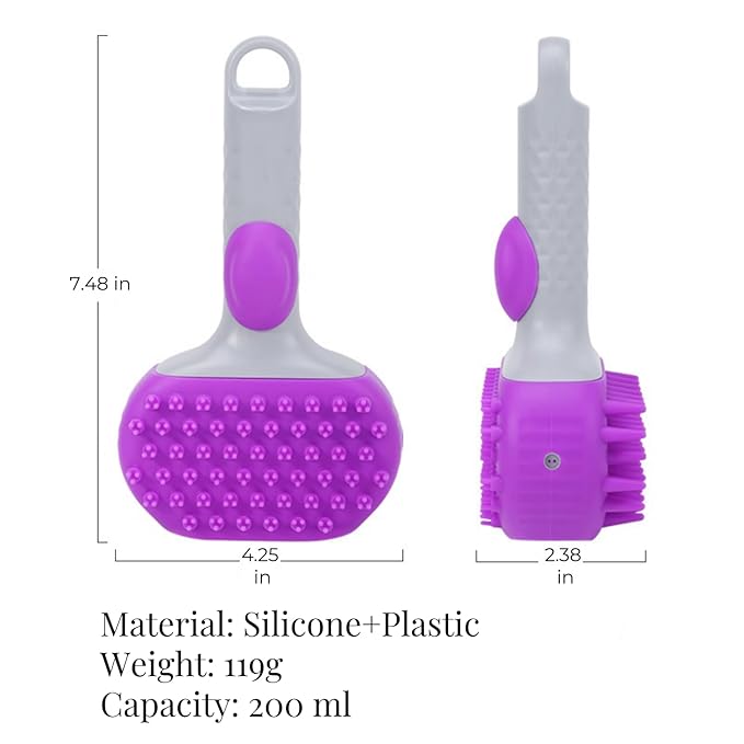 - Convenient Liquid Filling: Our pet brush with large opening and 200 ml capacity eliminates the hassle of repeatedly adding shower gel, while the pneumatic pressure dispensing button ensures precise and leak-free dispensing; Plus, our handy visualization window allows you to monitor the liquid level at a glance