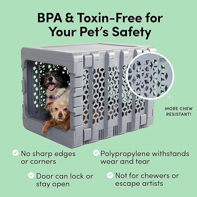 - MADE FOR PET AND PAWRENT SAFETY - Our hard plastic dog crate is constructed of BPA-free, non-toxic polypropylene that withstands daily wear and tear. There are no sharp edges, or corners, and the door can stay open or lock as needed (not for escape artists).