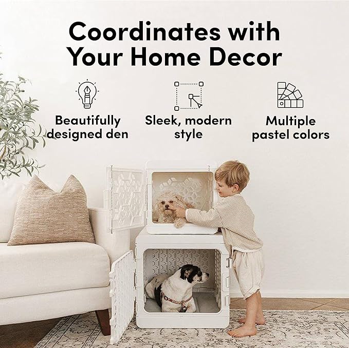 - COORDINATES WITH YOUR HOME DECOR - This beautifully designed resting area blends effortlessly into your stylish home. The crate's sleek, modern pattern helps balance airflow and light with a den-like environment while helping prevent injury to paws and jaws.
