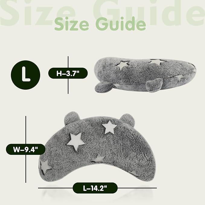 Dog Calming Pillow Glow in The Dark, Soft U-Shaped Pet Pillows for Dogs & Cats, Machine Washable, Dog Neck Pillow, Joint Relief, Better Sleep (Large, Gray)