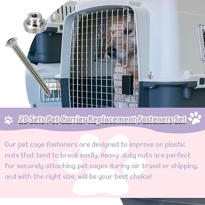 - Convenient Set: Our pet carrier replacement fasteners set Includes 20 heavy-duty solid stainless steel nuts and 20 M5 bolts, providing all the fasteners you need for your pet carrier or kennel