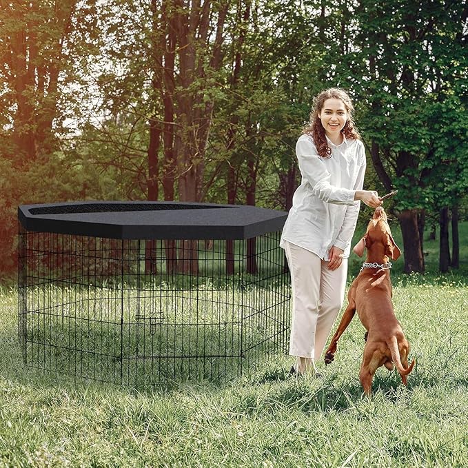 Pet Playpen Dog Pen Foldable Dog Exercise Fence 8 Panels 30 Inch Kennels Pet Playpen Options Ideal for Pet Medium Animals Outdoor Indoor (Playpen with Top Cover)