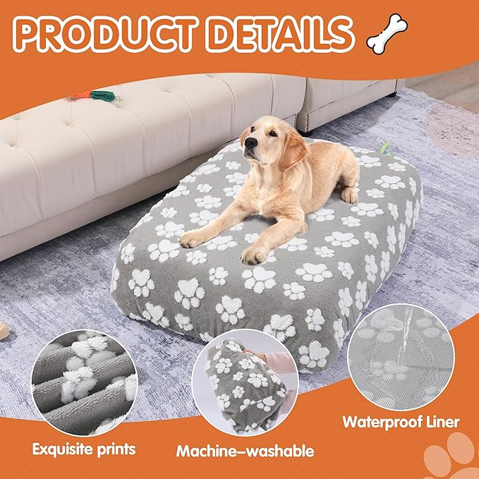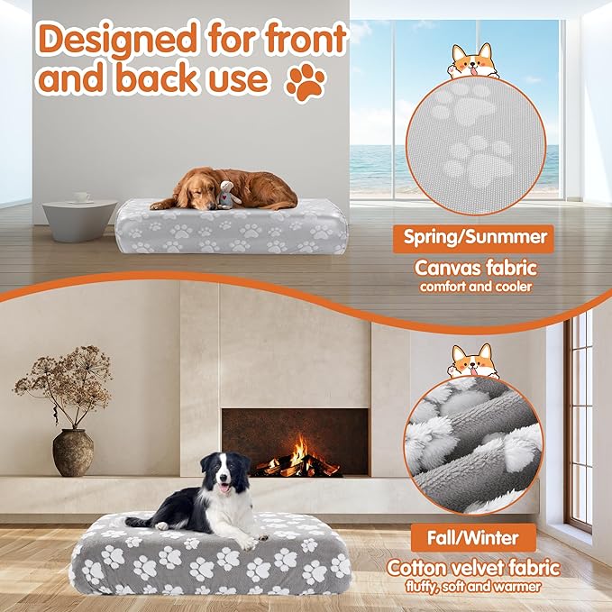 - 【Cute Print on Soft Fabric】:The dog bedspread is made of light gray dog paw print fabric, different from most solid color dog bedspreads on the market. Add a cute and delicate visual effect, in addition, the high quality fiber quilted surface provides your pet with a soft touch experience.