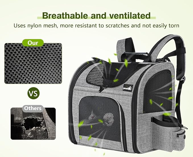 - 【Outstanding Ventilation and Visibility】: The Pecute cat backpack has 4 sides of mesh windows, and the large mesh window design ensures adequate air circulation and provides a wide and clear view for your pet. The top mesh window is convenient for feeding or interacting with your pet, which can effectively relieve your pet's anxiety and boredom.