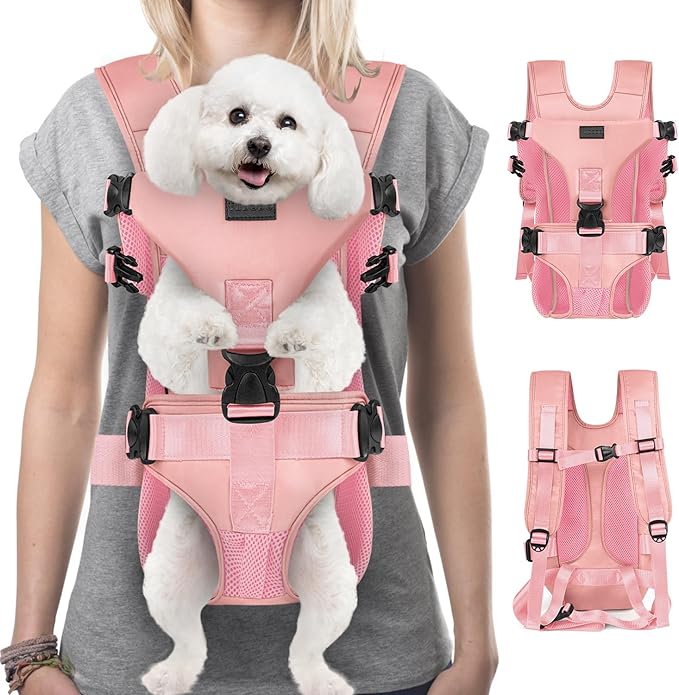 YUDODO Dog Backpack Carrier with Adjustable Safety Buckle Easy-fit Pet Dog Front Carrier for Small Medium Dog Legs Out Dog Chest Carrier for Traveling Walking Cycling (Medium, Pink)