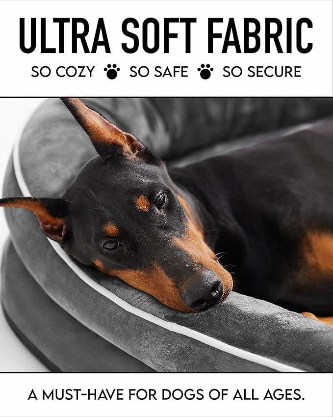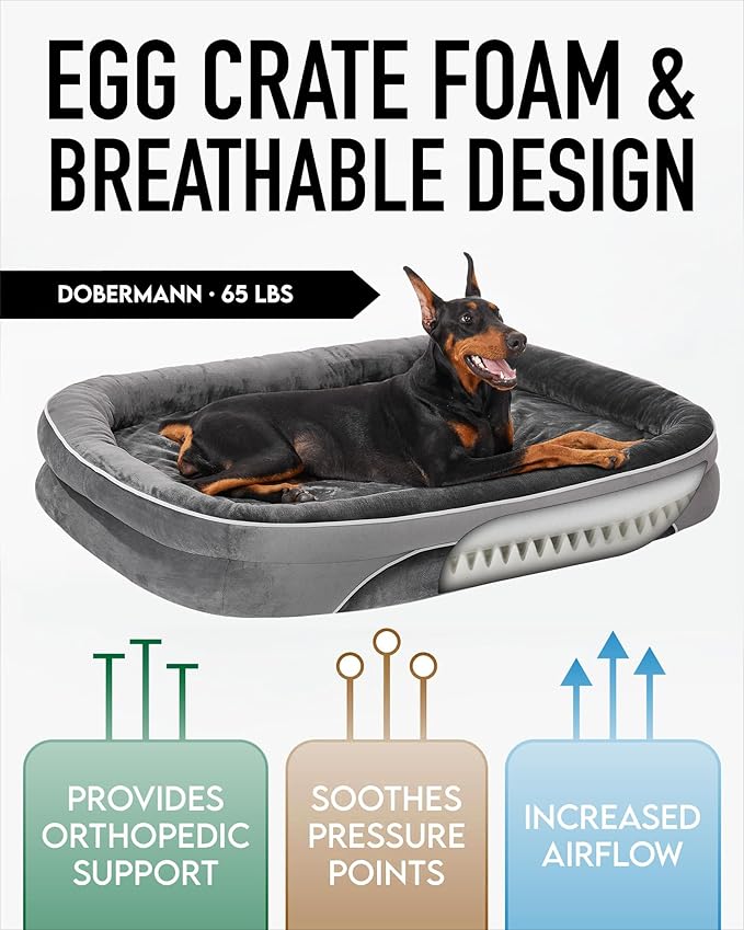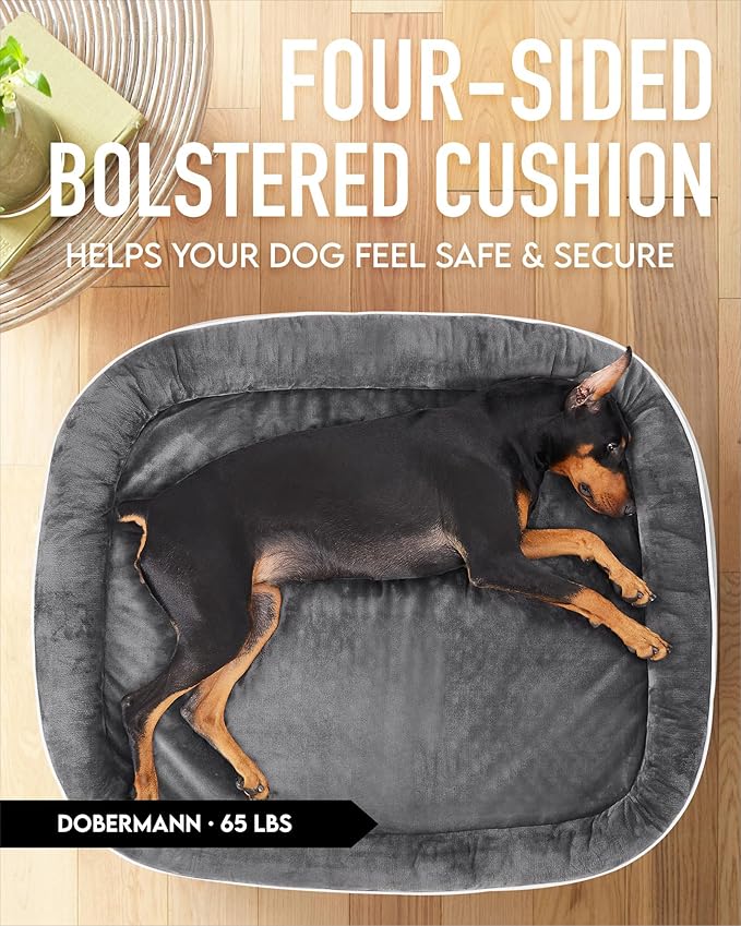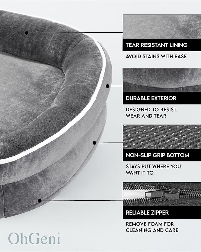 OhGeni Orthopedic Dog Bed for Jumbo Dogs, Dog Couch Design with Egg Foam Support, Removable, Washable Plush Cover and Non-Slip Bottom with Four Sided Bolster Cushion (Gray)