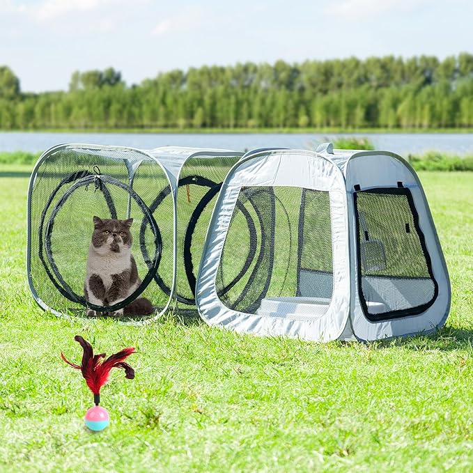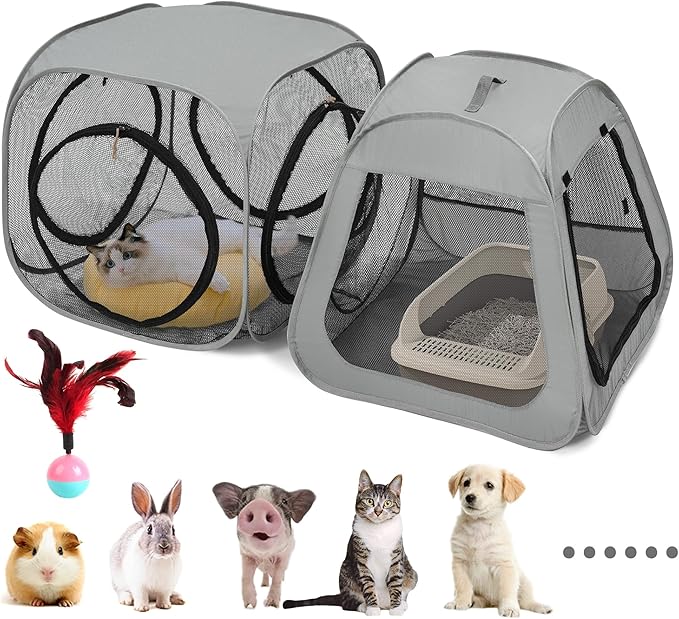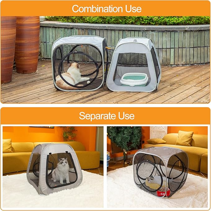 - Separate-areas:Cat tent with 2-separate areas for cats to feed, rest, and use the litter box individually, creating a clean and comfortable living space for your feline friend.
