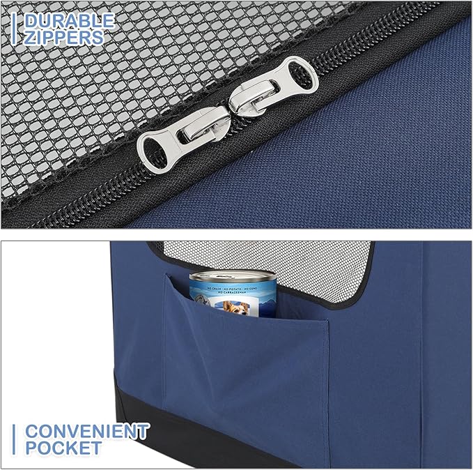 - Portable Convenience: Featuring a sturdy top handle for easy carrying and side pockets for storing treats and toys, this dog crate combines functionality with convenience, making it ideal for travel or everyday use