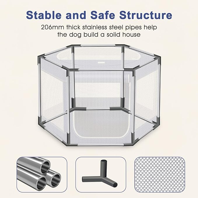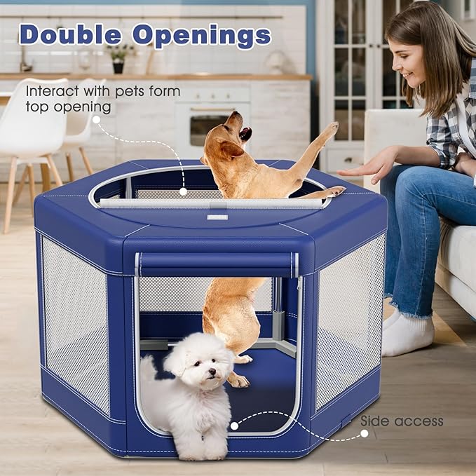 Hexagonal Dog playpen, 45Inch Soft Puppy Playpen with 600D Oxford Fabric, Stable Structure with Thickend Stainless Steel Tubes, 25.6 Inch Height Pet Playpen for Small and Medium Dogs, Animals