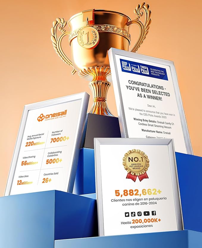 oneisall Cordless Dog Grooming Vacuum,5200 mAh Dog Grooming Kit with Clippers,Nail Grinder,Trimmer,2L Dustbin for Shedding with Grooming Tools-Quiet Suitable for All Breeds,Cleaning at Home Comfy C1