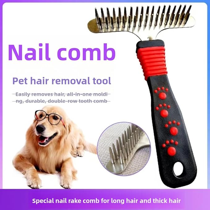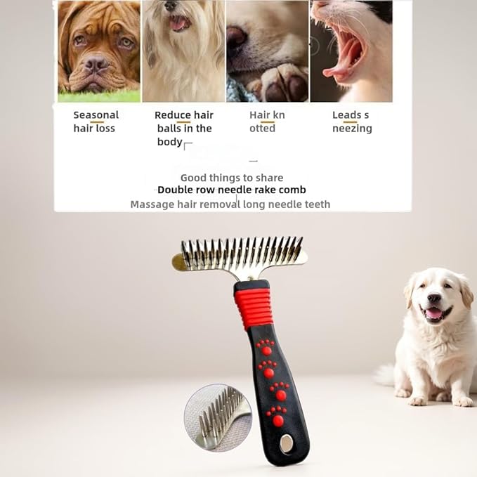 Dog comb Dog rake comb Double row raking does not hurt the skin massage Stainless steel Suitable for large cats and dogs