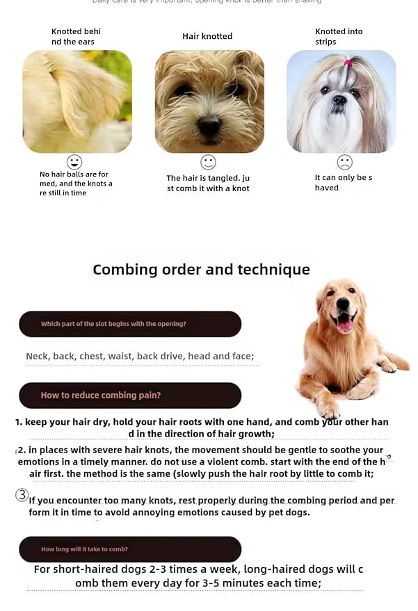 - The comb teeth are arranged properly to adapt to different dog hair lengths and densities. For golden retrievers, Teddy and other different breeds of dogs, whether long hair or short hair, can be brushed effectively.