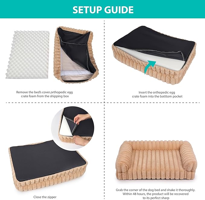 - Warm Tips: Open the compressed packaging, grab a corner of the dog bed and shake it thoroughly. Within 48 hours, the product will be recovered to its perfect sharp.