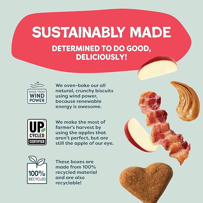 - Made with real bacon, peanut butter, and apple, your pup will love these treats. These delicious dog treats and cookies are made with fiber-rich upcycled sweet potato to support healthy digestion.
