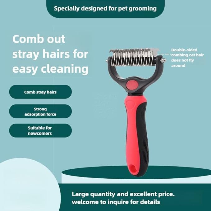 Pet Comb Ultimate Dog Grooming Set: Professional Deshedding Brushes for Dogs & Cats – Perfect for Long-Haired Breeds, Flea Removal, & Dematting(Red, For Large and Medium Dogs)