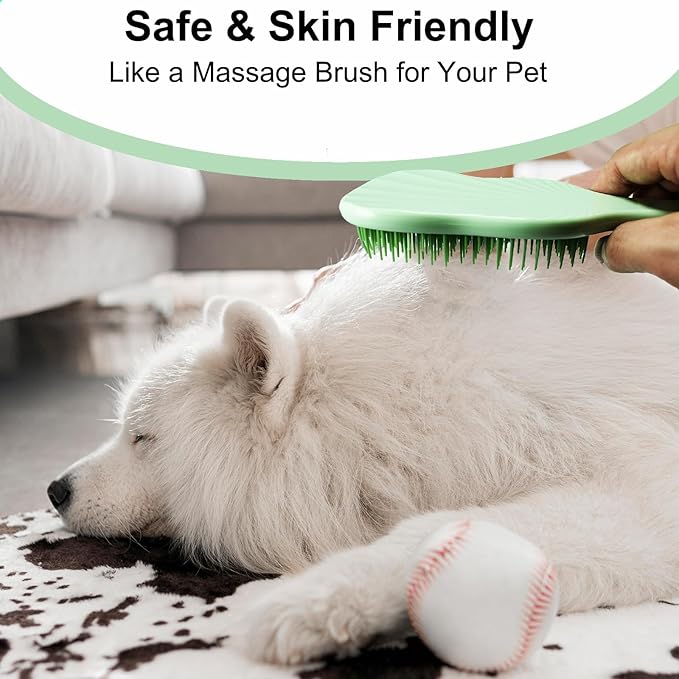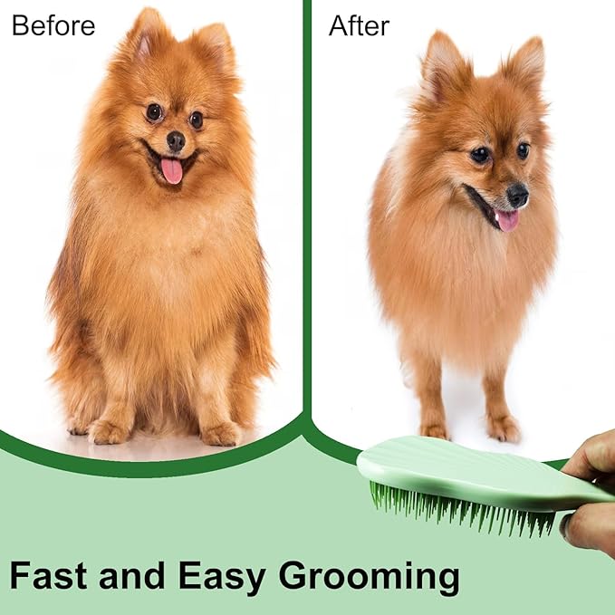 Soft Bristle Puppy Brush - Gentle Grooming Brush for Small Dogs & Puppies - Effective Hair Remover for Tangles & Shedding (Green)
