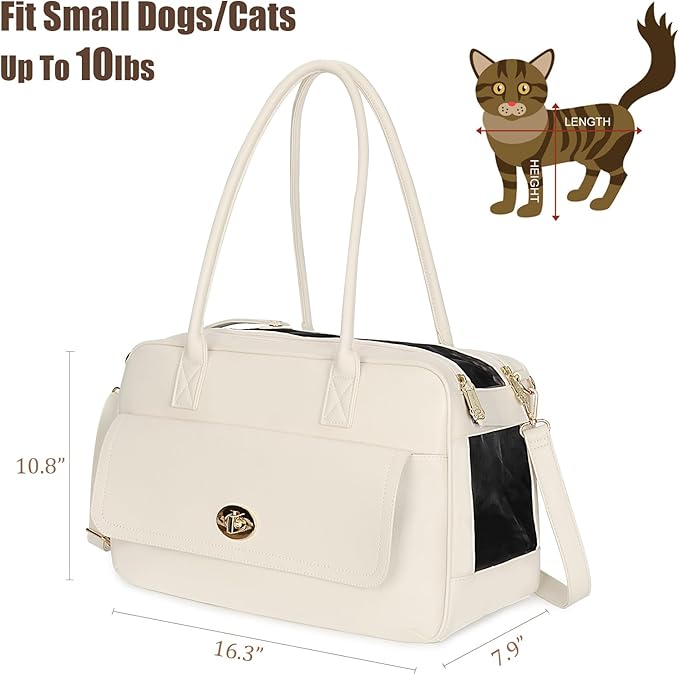 Fashion Pet Carrier Dog Purse Carrier Soft-Sided Carriers for Puppy, Stylish Leather Handbag Travel Pet Bag for Small Dogs Cats, TSA Airline Approved