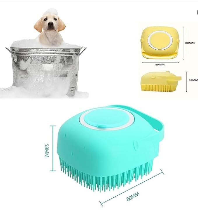 Pet Bath Massage Brush Puppy Dog Cat Grooming Soft (Blue) (yellow)