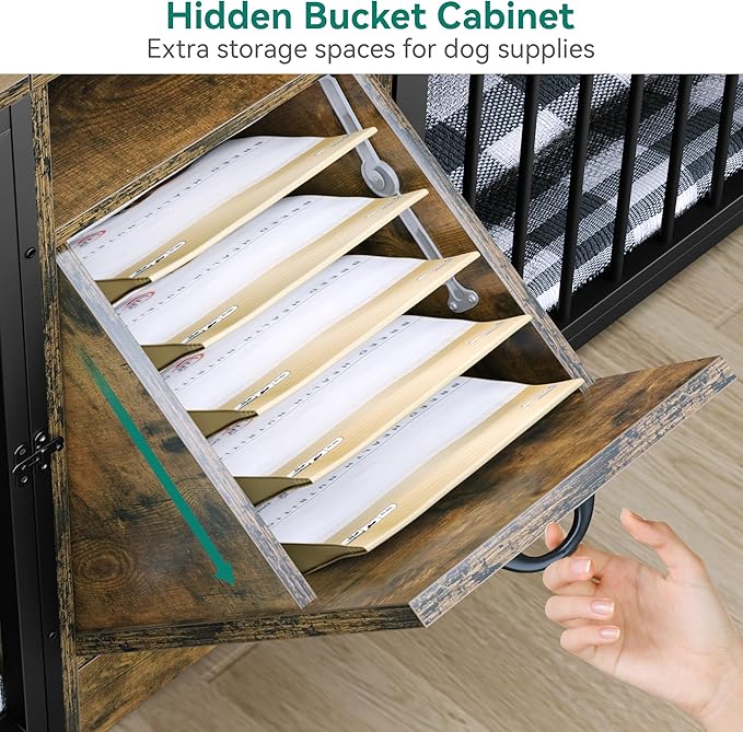 - Pull-out Dog Bowl Design: Dog Kennel Furniture Bottom Drawer with Double Stainless Steel Food Bowls that can be pulled out when feeding and can also be hidden to save space. The diameter of the Bowl is 7.3 inch, big enogh even for large dogs