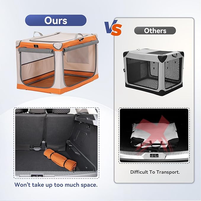 - Convenient Multi-Access Design: Our collapsible dog crate includes 3 doors (front, side, and top) to provide versatile access points. The front and side doors can be rolled up and secured with Velcro, making it easier to load and unload your pet.