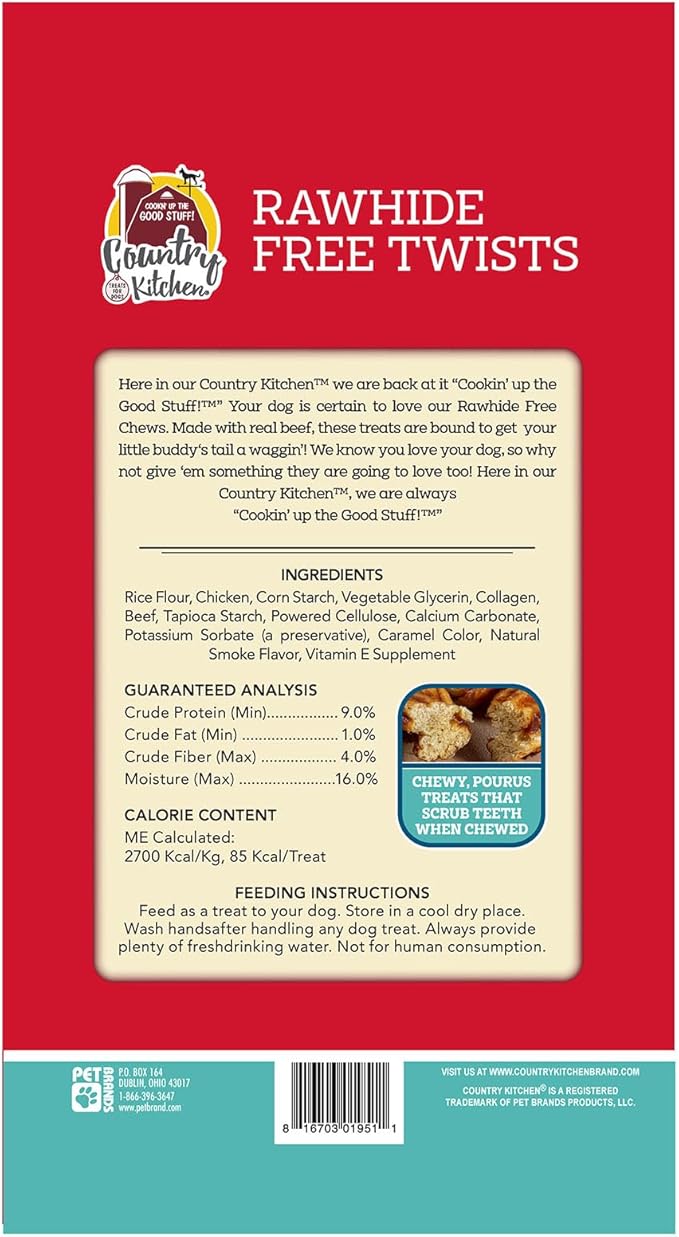 - Country Kitchen Rawhide Free Twists Dog Chews: Our 100% rawhide free chews are made with real beef