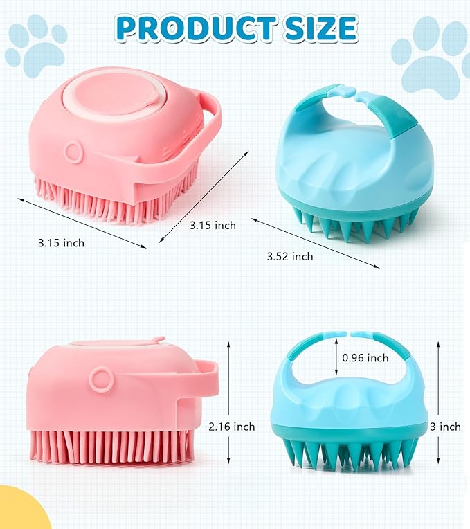Pet Grooming Brush with Shampoo Dispenser, Soft Silicone Bath Scrubber for Dogs, Cats, and Puppies – Gentle Cleaning and Massaging Tool, Ideal for Small Pets, Easy to Use & Clean, Pink/Blue