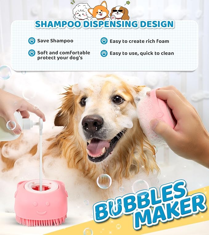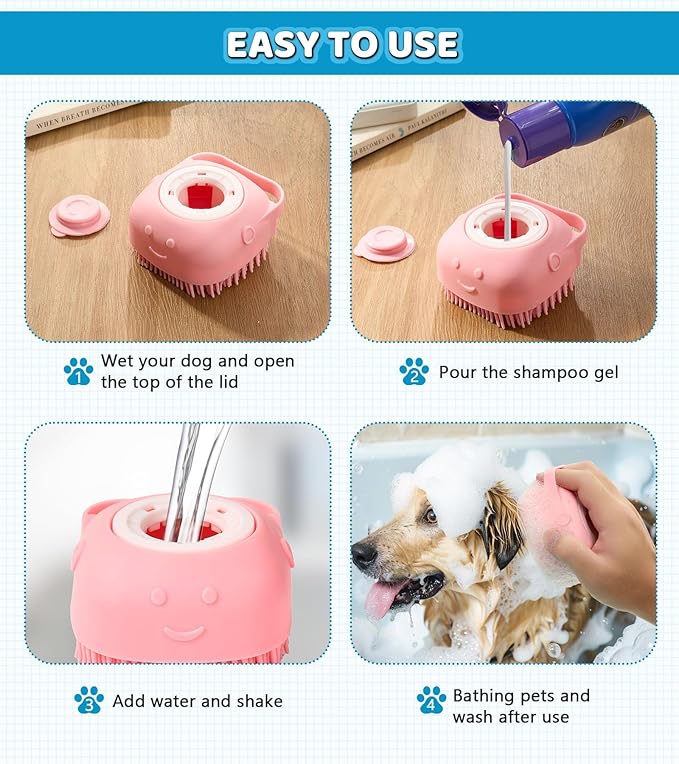 - Built-in Shampoo Dispenser for Efficient Cleaning:Just press to release shampoo directly from the brush, making bath time quicker and easier with no extra steps.