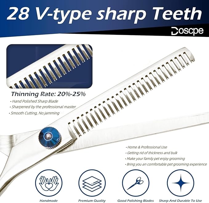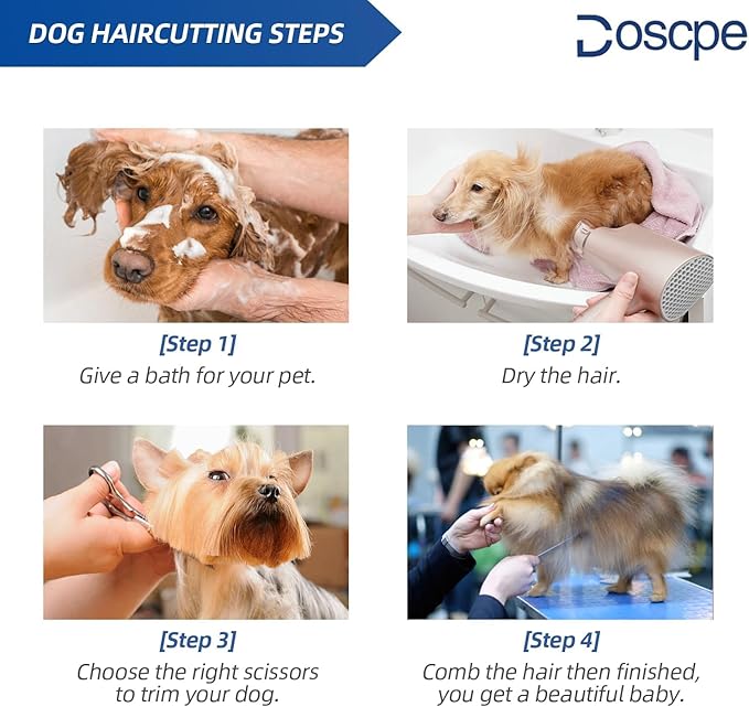 - [Premium Material]: Our Doscpe scissors in this grooming dog shears set is made of high quality stainless steel, and the dog scissors is sharp and durable.