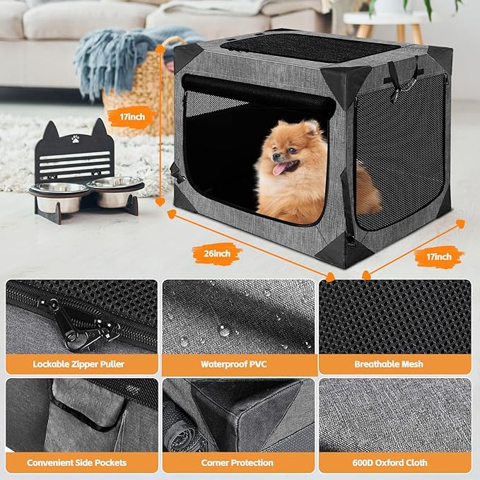- ?�Easy to Install?‘This soft dog crate can be effortlessly assembled in seconds without any tools; Can be conveniently folded flat for compact storage and portability to gain valuable space. The quick assembly in just 2 minutes and easy disassembly make it a hassle-free choice for your adventures.