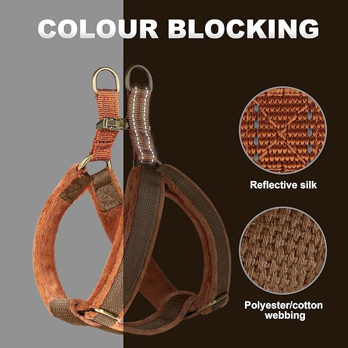 Beirui Soft Small Dog Harness and Leash Set-Adjustable Step in Dog Harness for Small Dogs-Easy Walk Dog Harness Small Sized Dog-Warm No Pull Dog Harness and Leash Used in Autumn Winter(Brown,S)