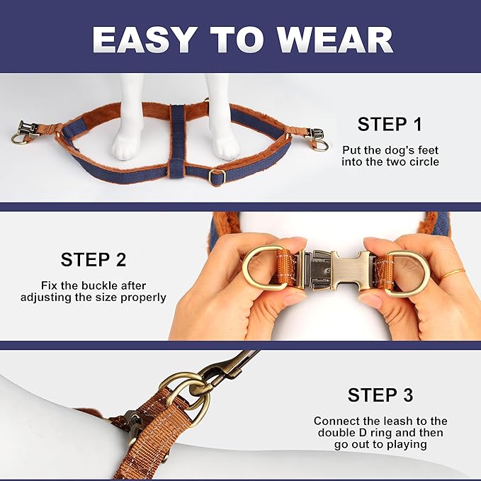- Easy On and Off : No more struggles with complicated small medium dog harness! Our quick fit step in dog harness is designed for effortless wear. Simply guide your dog's front legs through the harness, secure the buckle, and you're ready for a walk. It's that simple and hassle-free
