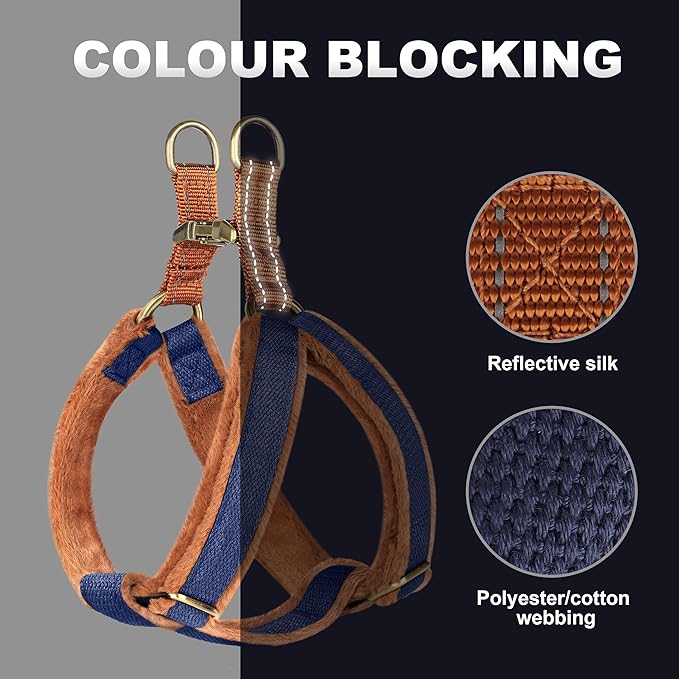Beirui Soft Small Dog Harness and Leash Set-Adjustable Step in Dog Harness for Small Dogs-Easy Walk Dog Harness Small Sized Dog-Warm No Pull Dog Harness and Leash Used in Autumn Winter(Dark Blue,S)