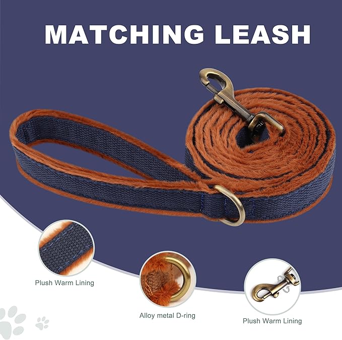 Beirui Soft Medium Dog Harness and Leash Set-Adjustable Step in Dog Harness for Medium Dogs-Easy Walk Dog Harness Medium Sized Dog-Warm No Pull Dog Harness and Leash Used in Autumn Winter(Dark Blue,M)