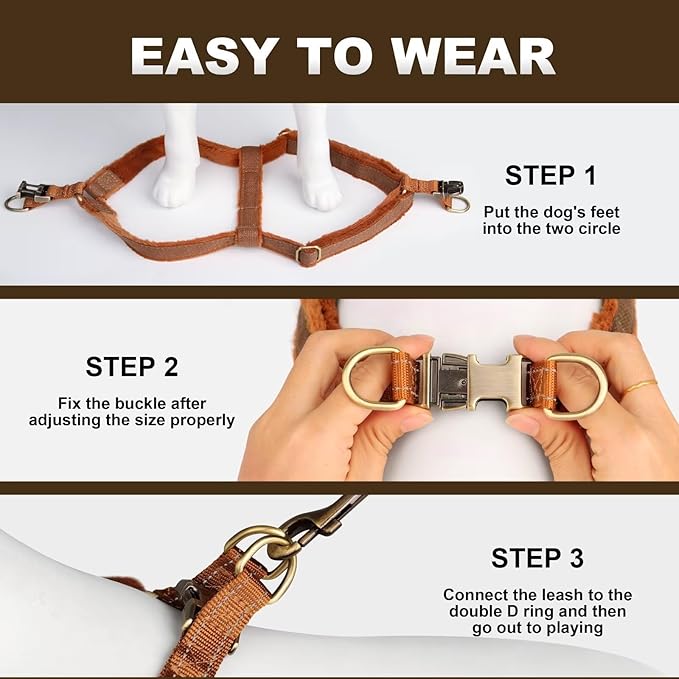 Beirui Soft Medium Dog Harness and Leash Set-Adjustable Step in Dog Harness for Medium Dogs-Easy Walk Dog Harness Medium Sized Dog-Warm No Pull Dog Harness and Leash Used in Autumn Winter(Brown,M)