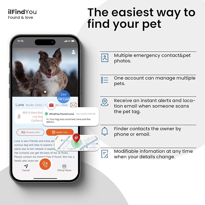 - Peace of Mind: ilFindYou pet name tag is a one-time purchase with no extra fees or need for installing any APP; Reliable method for identifying lost pets; NO longer to worry about a dead battery or out of connection range; with our soundless pet tags find serenity for you and your pet