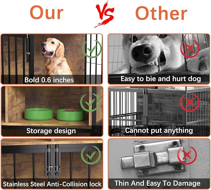 - 【Multi-PURPOSE & Extra Storage】:This is a nice piece of furniture that also serves as a dog crate. Appears as an elegant side table. Includes extra storage space for lots of pet supplies without cluttering up your house.